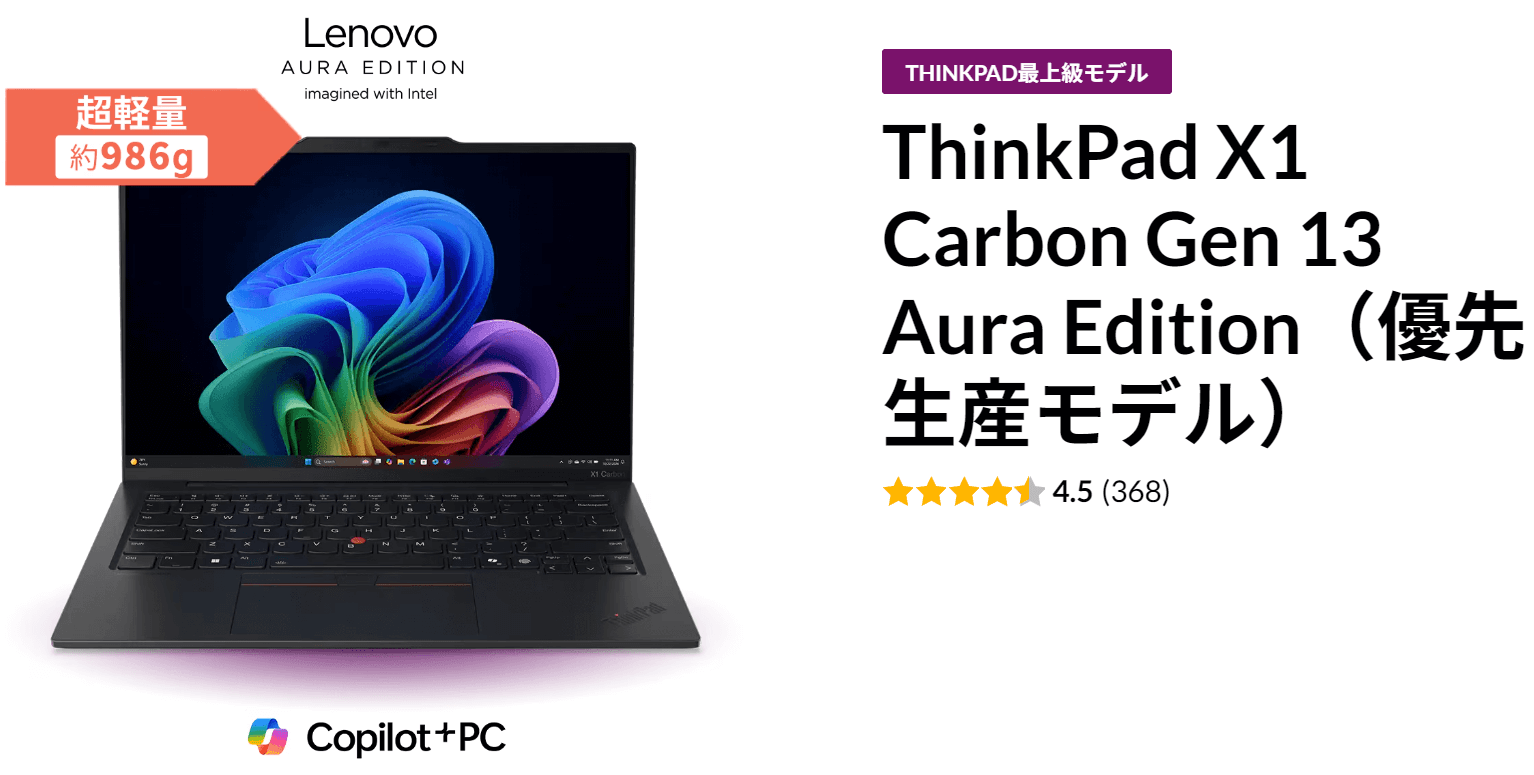 1位 ThinkPad X1 Carbon Gen 13 Aura Edition