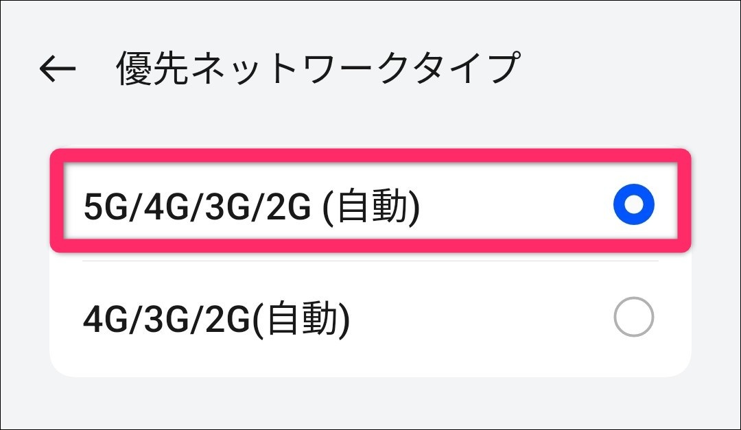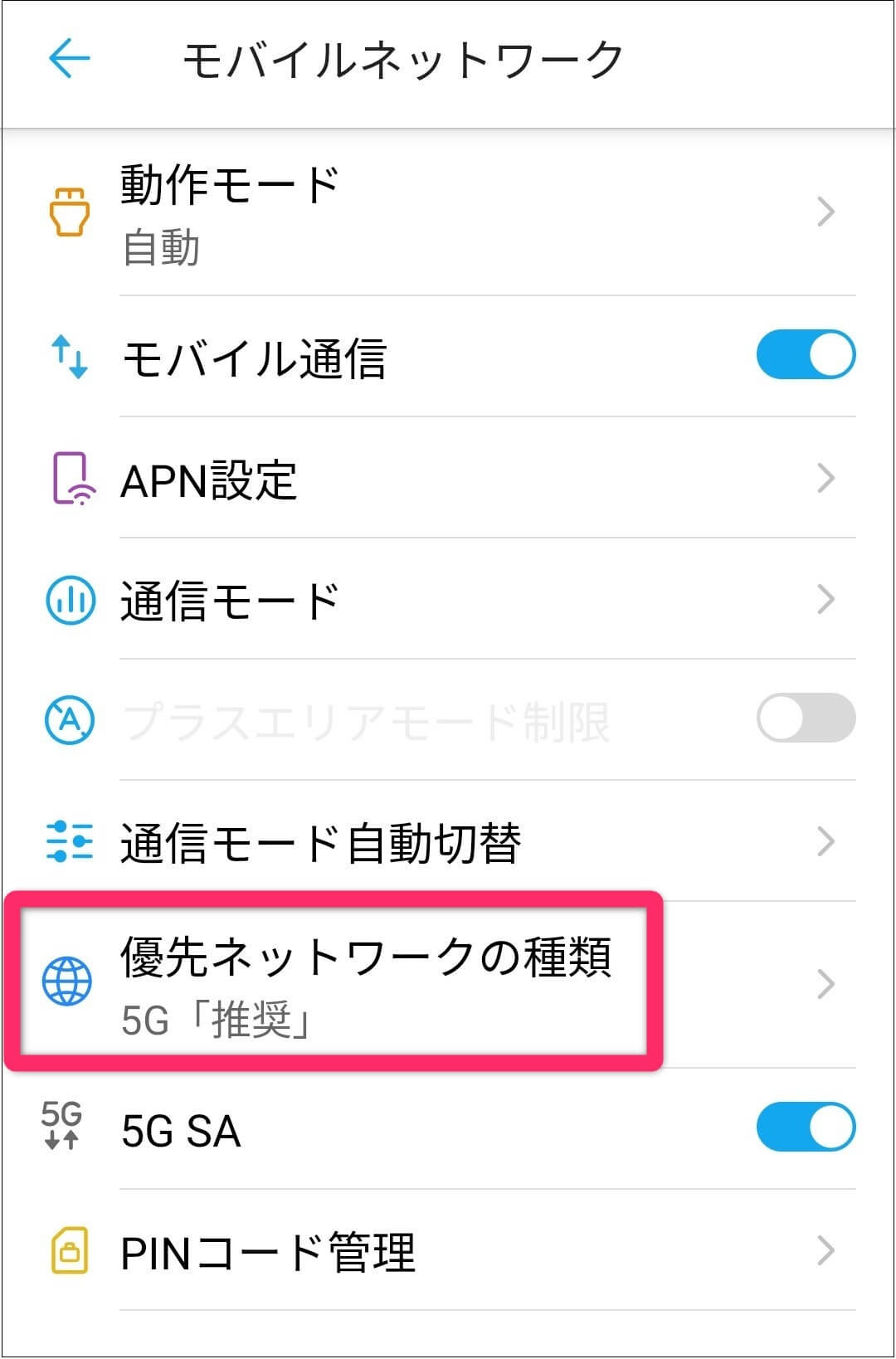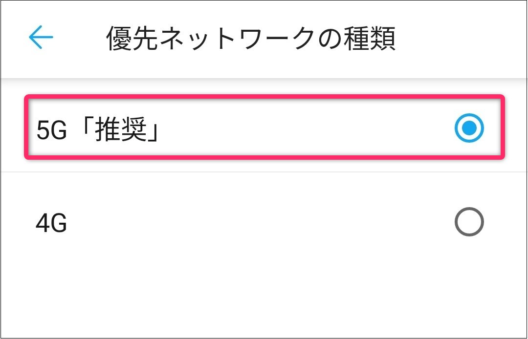 そしてスマートフォンの設定画面で、モバイルデータ通信が「5G」を優先する設定になっているか確認しておきましょう。