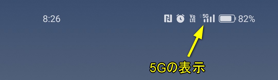 スマートフォンの右上のアンテナピクトマークで「5G」の表示が出ていれば、5G回線をつかめる状況です。