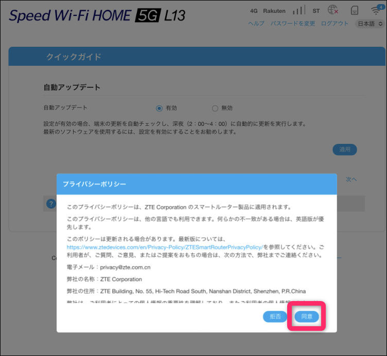 プライバシーポリシーの同意が求められたら「同意」で進みます。(環境によって異なります)