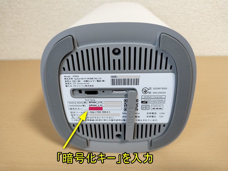 スマホやパソコンを接続する時は、L13 底面のSSIDと暗号化キーを入力すれば繋げられます。