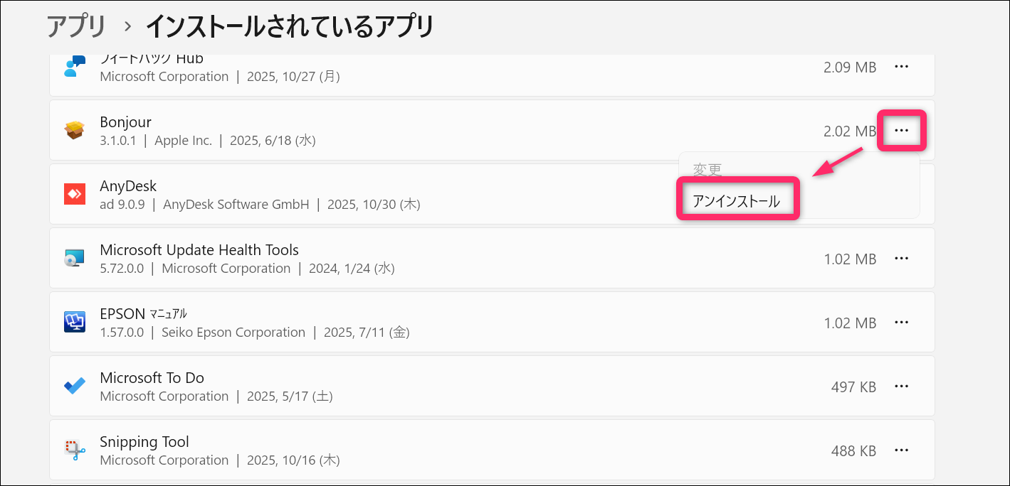 Windows PCを使っていて、あるアプリが不要だったら、下のように普通に「アンインストール」していることと思います。