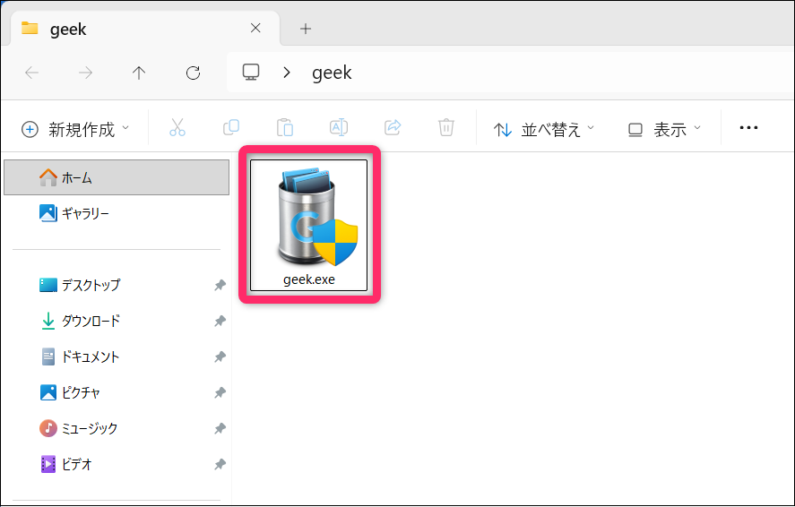 geekアプリ の exe エグゼ(実行)ファイルをクリックして起動します。