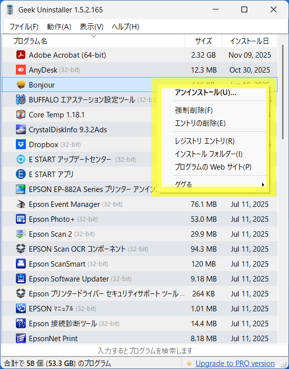 いろんなアンインストーラーソフトがありますが、あやしいソフトも出回っているので信頼が証明されている Geek Uninstaller(ギーク アンインストーラー)か Revo Uninstaller(レボ アンインストーラー) を利用するのが無難です。