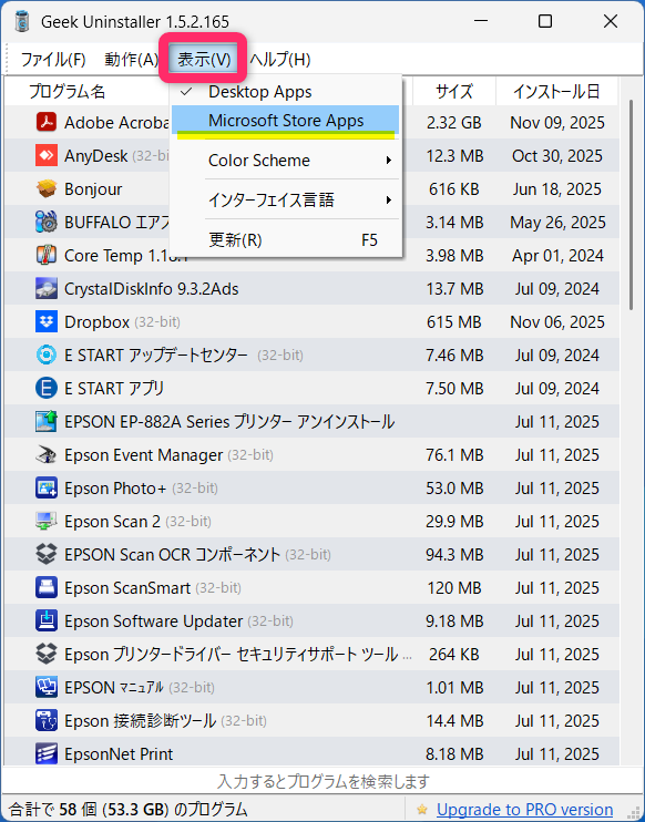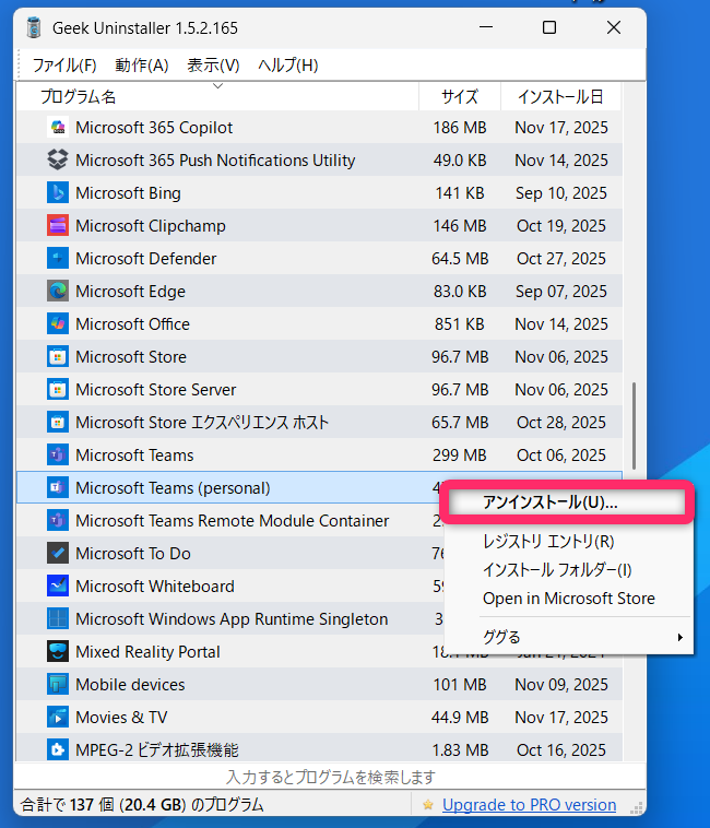 Geek Uninstallerでは、Microsoft ストアアプリもアンインストールできます。