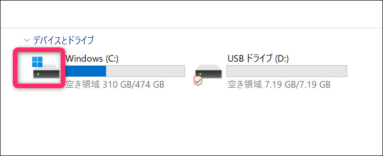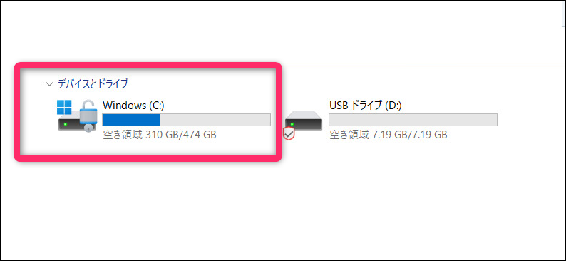 そうすると「エクスプローラー」の C ドライブの鍵マークが取れたことが確認できます。