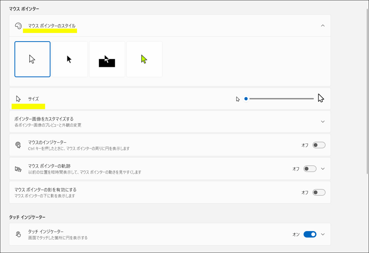 マウスポインターを見やすく調整する